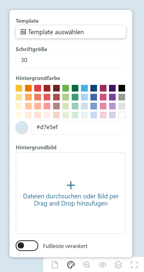 - Hintergrundfarbe: Die Hintergrundfarbe bestimmt die Farbe der Arbeitsfläche.