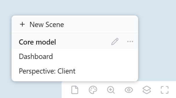 - Select “New Scene” to create a completely new, empty scene in your model. The scene is selected immediately, and you can start adding content right away.